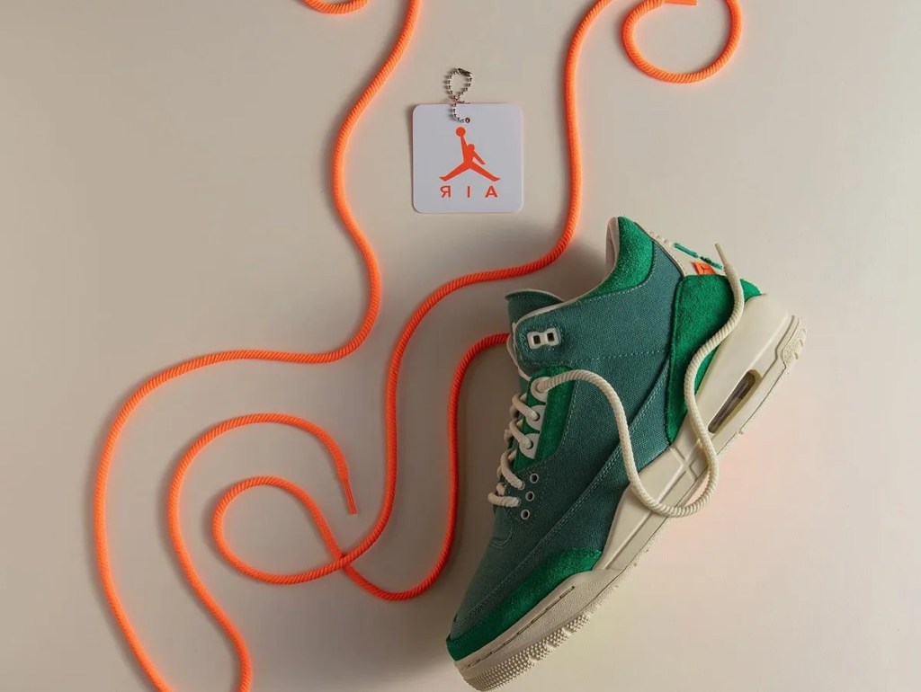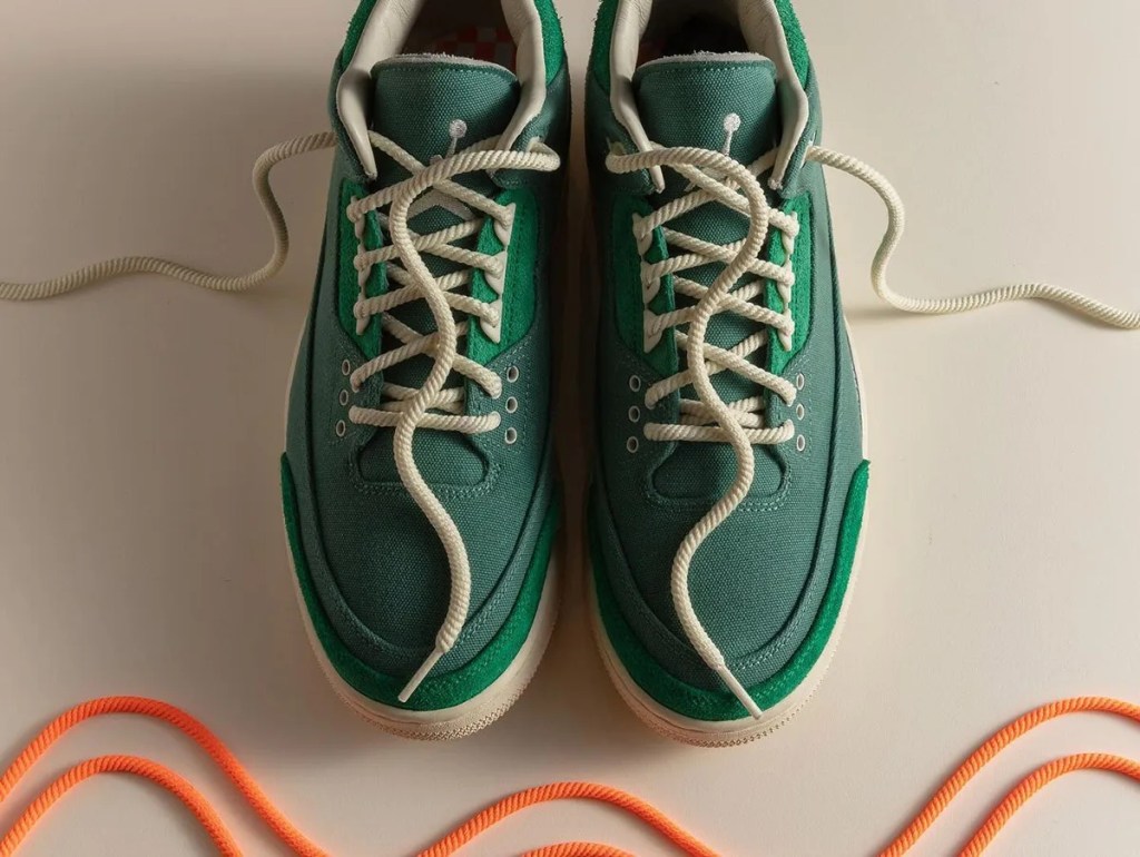Los Air Jordan 3 también cuentan con cordones de cuerda más gruesos que no son muy comunes en los Air Jordan, pero agregan esa estética de estilo de vida que Abney claramente busca capturar.